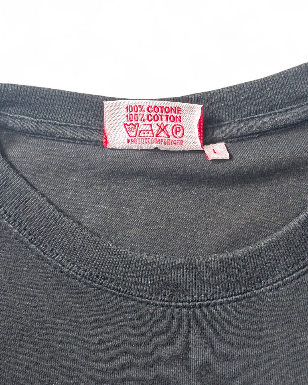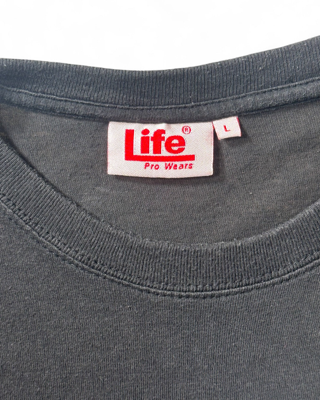This is a T-shirt from the 2007 film American Gangster. It's a crime film directed by Ridley Scott and starring Denzel Washington and Russell Crowe. While the poster design cuts off the characters' faces, the T-shirt perfectly captures them, making it a delight for fans. Copyrighted, size L.