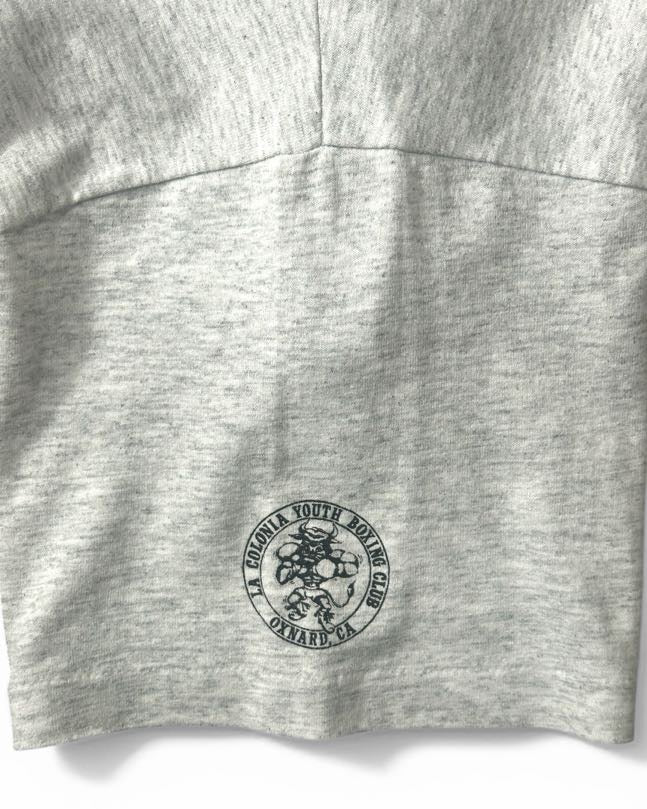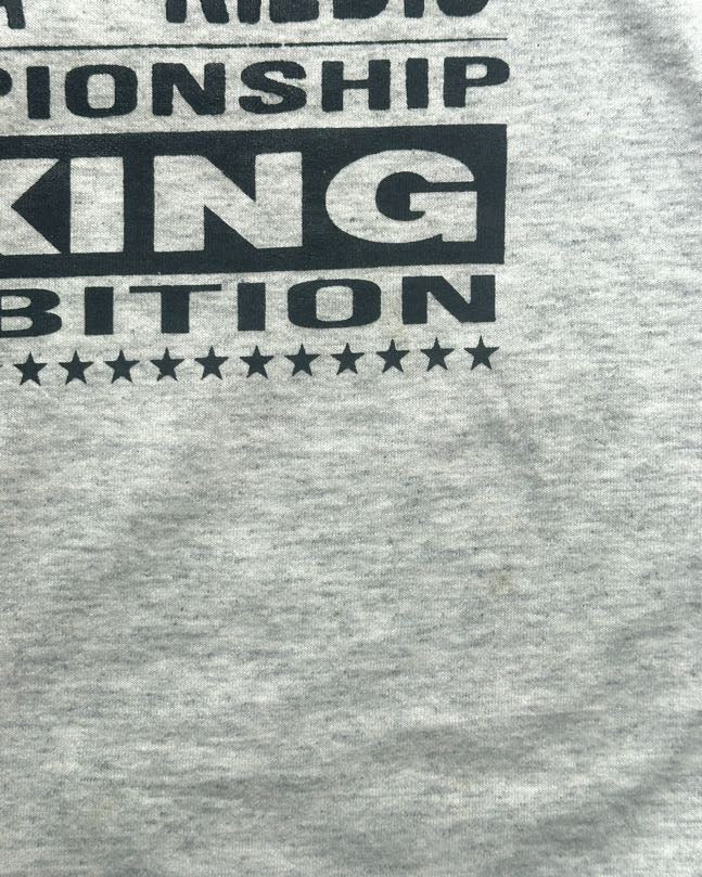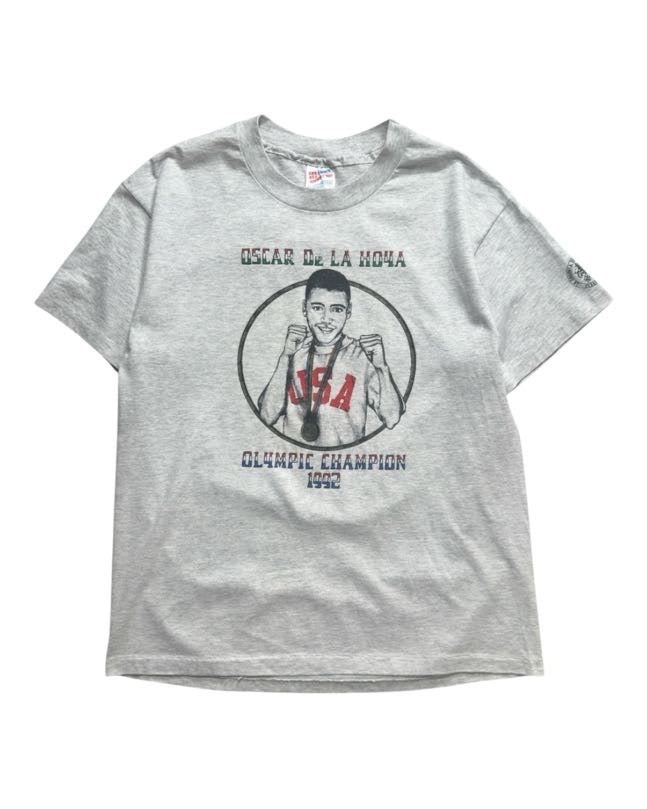 1992年、Red Hot Chili Peppersのヴォーカリスト アンソニー・キーディズが、バルセロナ五輪のボクシングライト級で金メダルを獲得したDe La Hoyaと、慈善事業のために戦ったエキシビジョンマッチ。正確な日付までは不明ながら、当時のファン会報には、当該のTシャツを着用するスタッフの姿が写っている。ジムスタッフやアンソニーの関係者にのみ配布された極めて希少性も高く、世界的な人気を誇るRed Hot Chili PeppersのヴィンテージTシャツの中でも歴史的な価値も非常に高い一枚ではないでしょうか。サイズL
