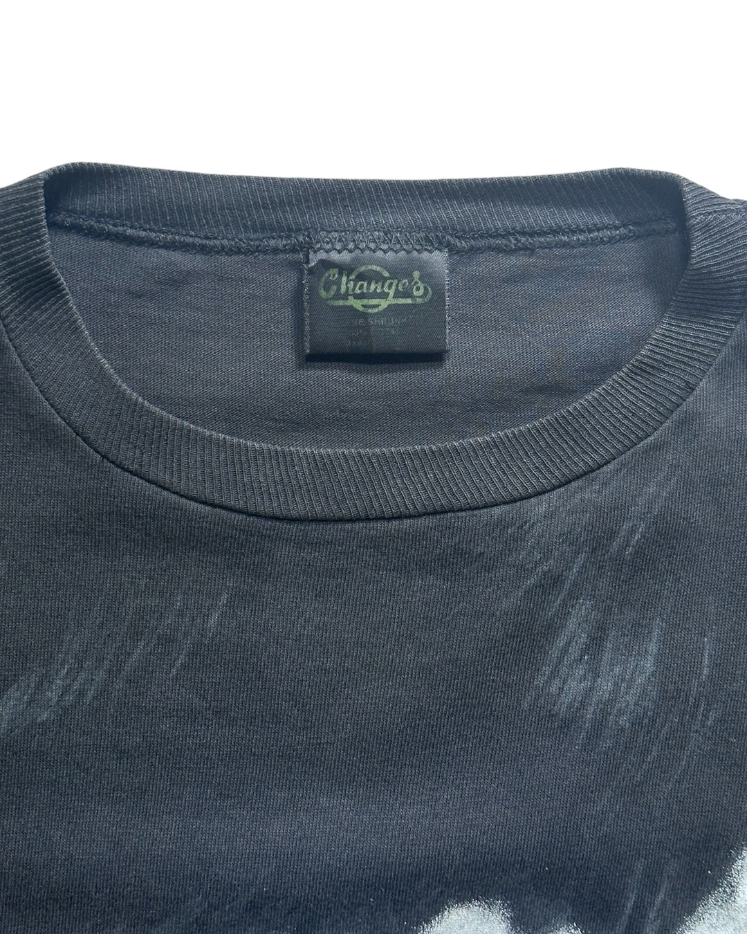 伝説的な中国武術家であり俳優のブルース・リーのTシャツ。CHANGES製のこの大版プリントシリーズは収集家も多い人気なシリーズです。コピーライトあり、サイズL