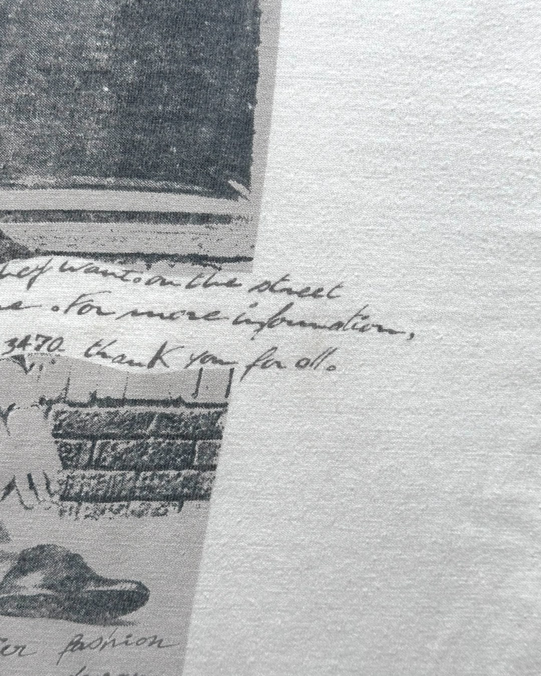 A bold photo print is placed on the front. The subjects are a man and woman wearing sunglasses relaxing on what appears to be a wooden deck, with handwritten-style text layered on top.The T-shirt looks like a store advertisement, but the design somehow evokes Bruce Weber. Size 38.