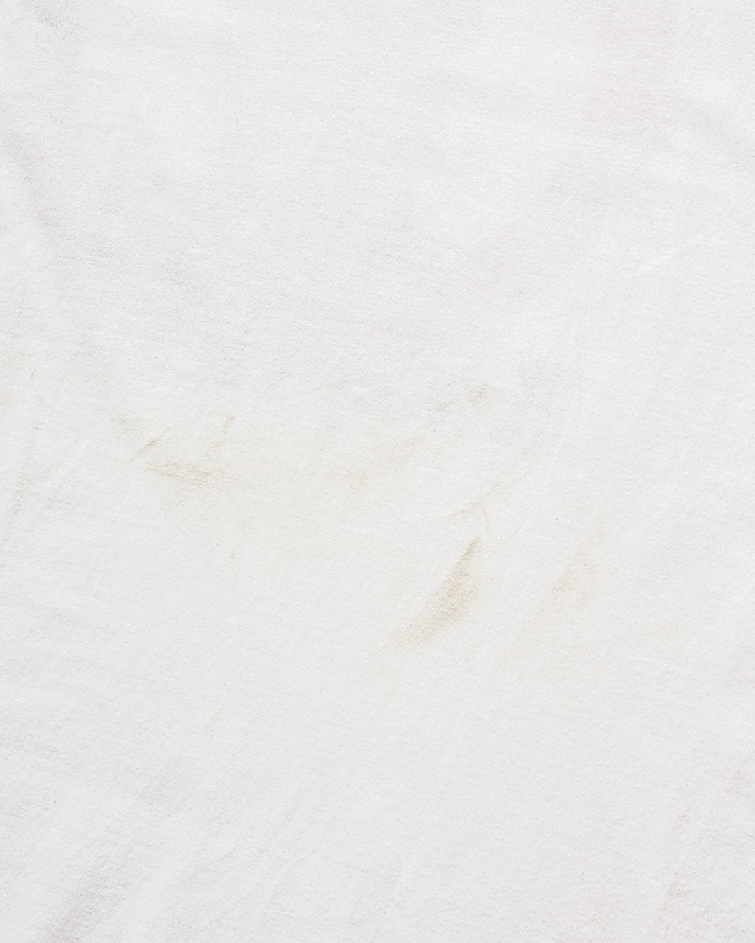 白ボディのフロント中央に、太い赤サークルの中へ毛沢東のモノクロ肖像を配置し、頭上に“ミッキー風”のグラフィックがプリントされています。下部にはセリフ体で “Mickey Mao’s Club” のテキスト。黒×赤の2色刷りによる強いコントラストと風刺性のあるユーモラスなデザインが特徴的です。サイズXL