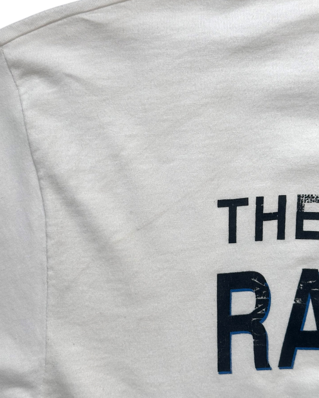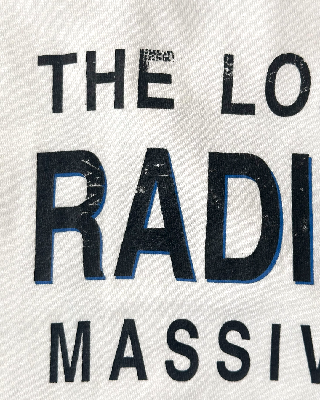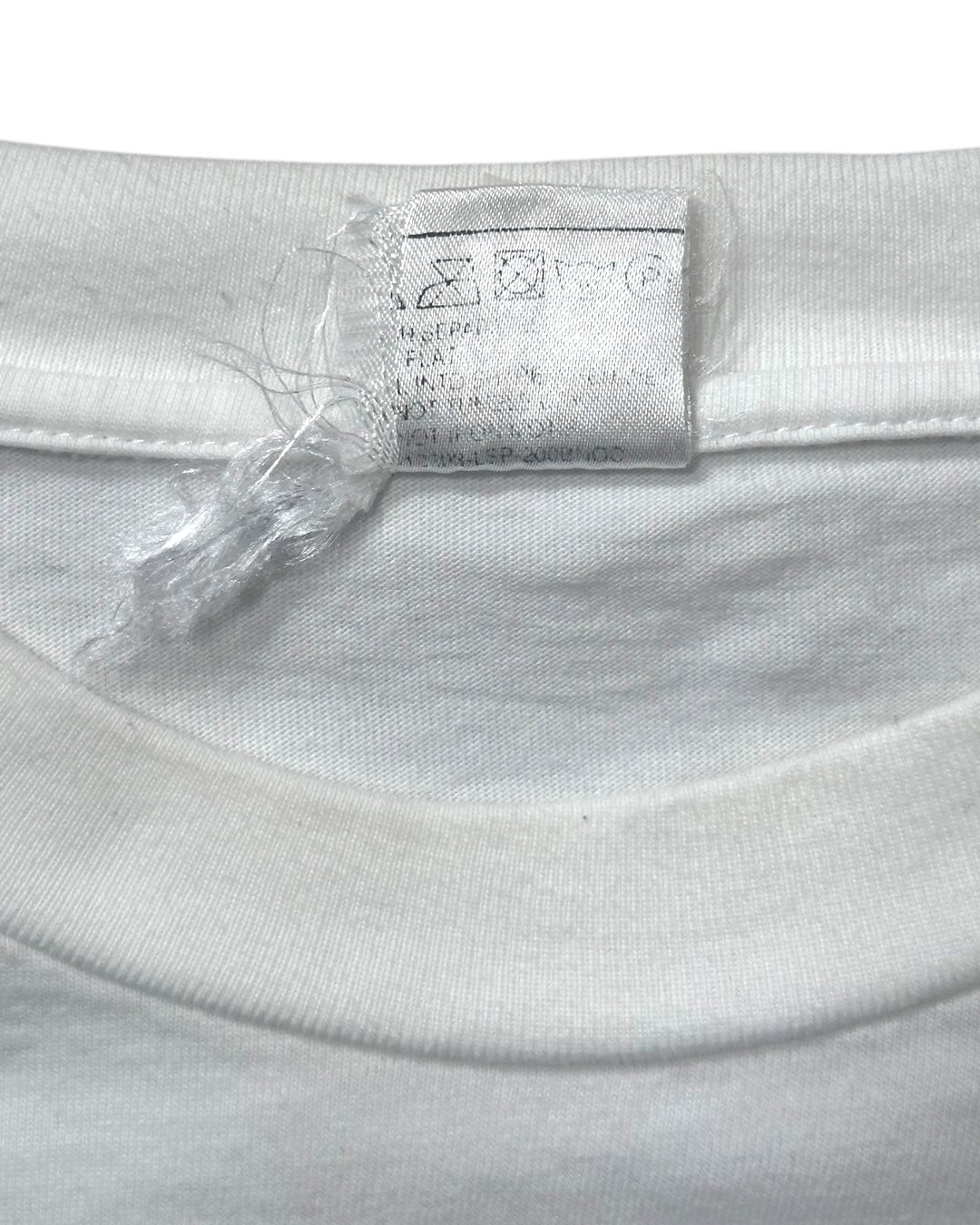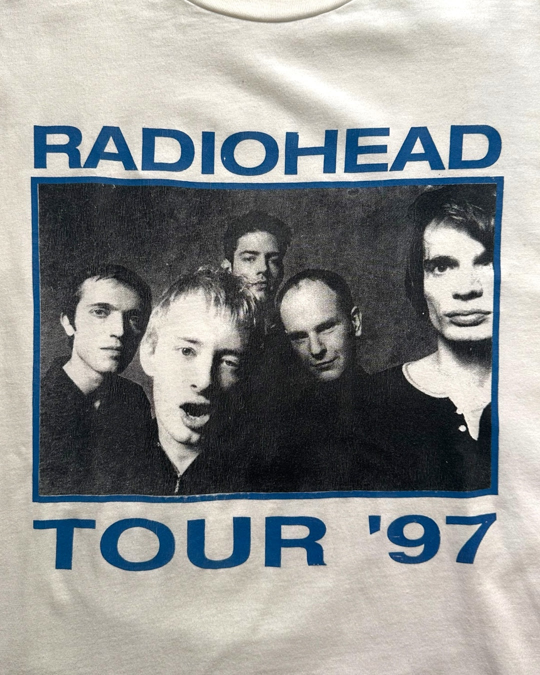 90年代Radioheadのユーロブートレグ・ロングスリーブTシャツ。バックプリントに刻まれた「THE LONGEST DAY」は、1997年6月21日にアイルランド・ダブリンのRDS Arenaで開催された伝説的な屋外イベントの名称です。この日は、ロック史を塗り替えた名盤『OK Computer』がリリースされてからわずか5日後という、バンドが神格化される直前の爆発的なエネルギーに満ちたタイミングでした。当時を知るファンの間では、その後のグラストンベリー・フェスティバルと並び、90年代の彼らを象徴する重要な一夜として語り継がれています。最大の魅力は、バックにプリントされた豪華な出演ラインナップです。RADIOHEAD、 MASSIVE ATTACK、TEENAGE FANCLUB 当時のUK/アイルランドのオルタナティブ・シーンの頂点にいた3組が連名で刻まれており、これはこの特定のイベントを記念して作られたブートレグならではの特別なディテールです。Radiohead、Massive Attack、Teenage Fanclub。これら3つの名前が1枚に収まったTシャツは、非常に希少性が高い歴史を閉じ込めたアーカイブピースかと思います。サイズXL