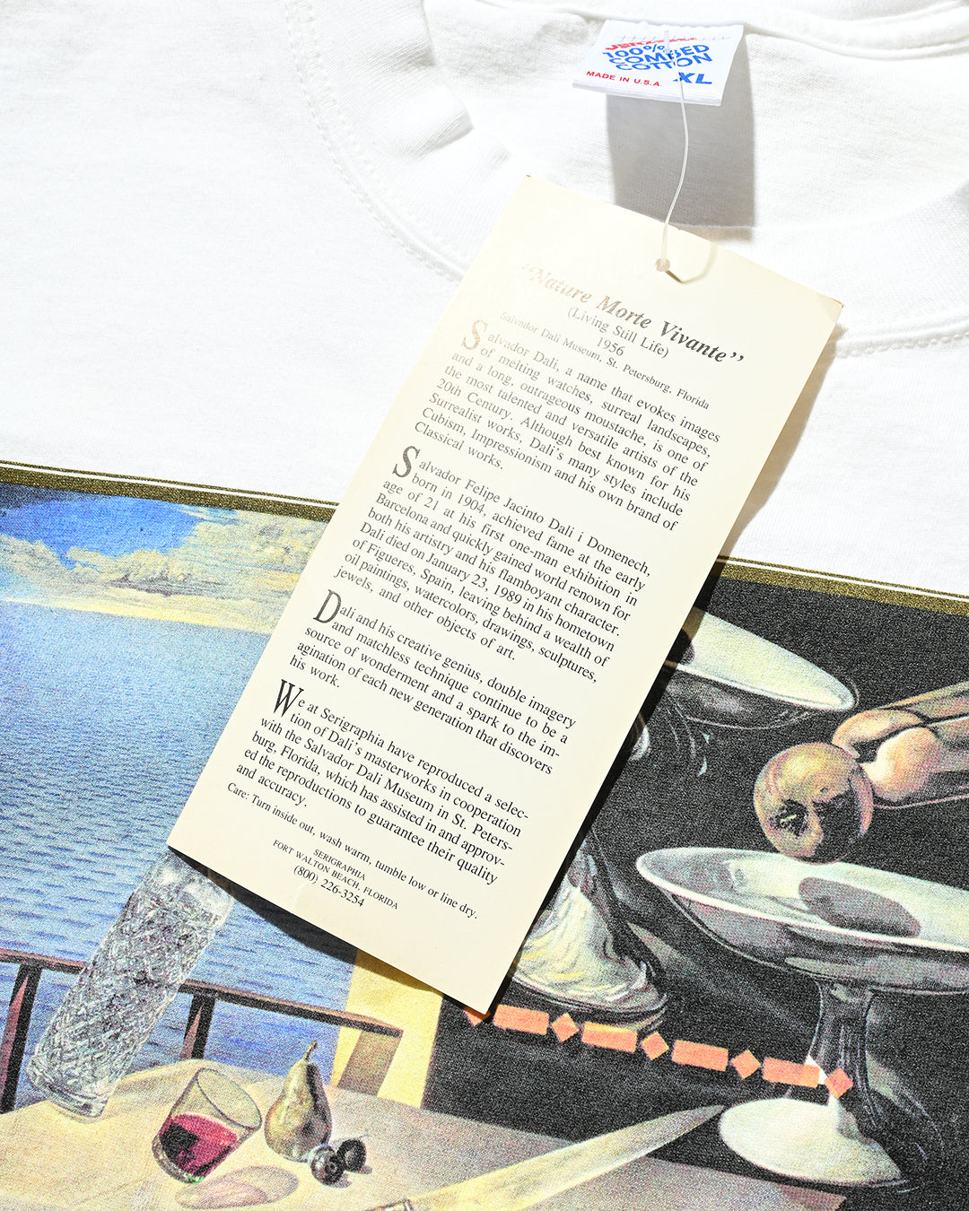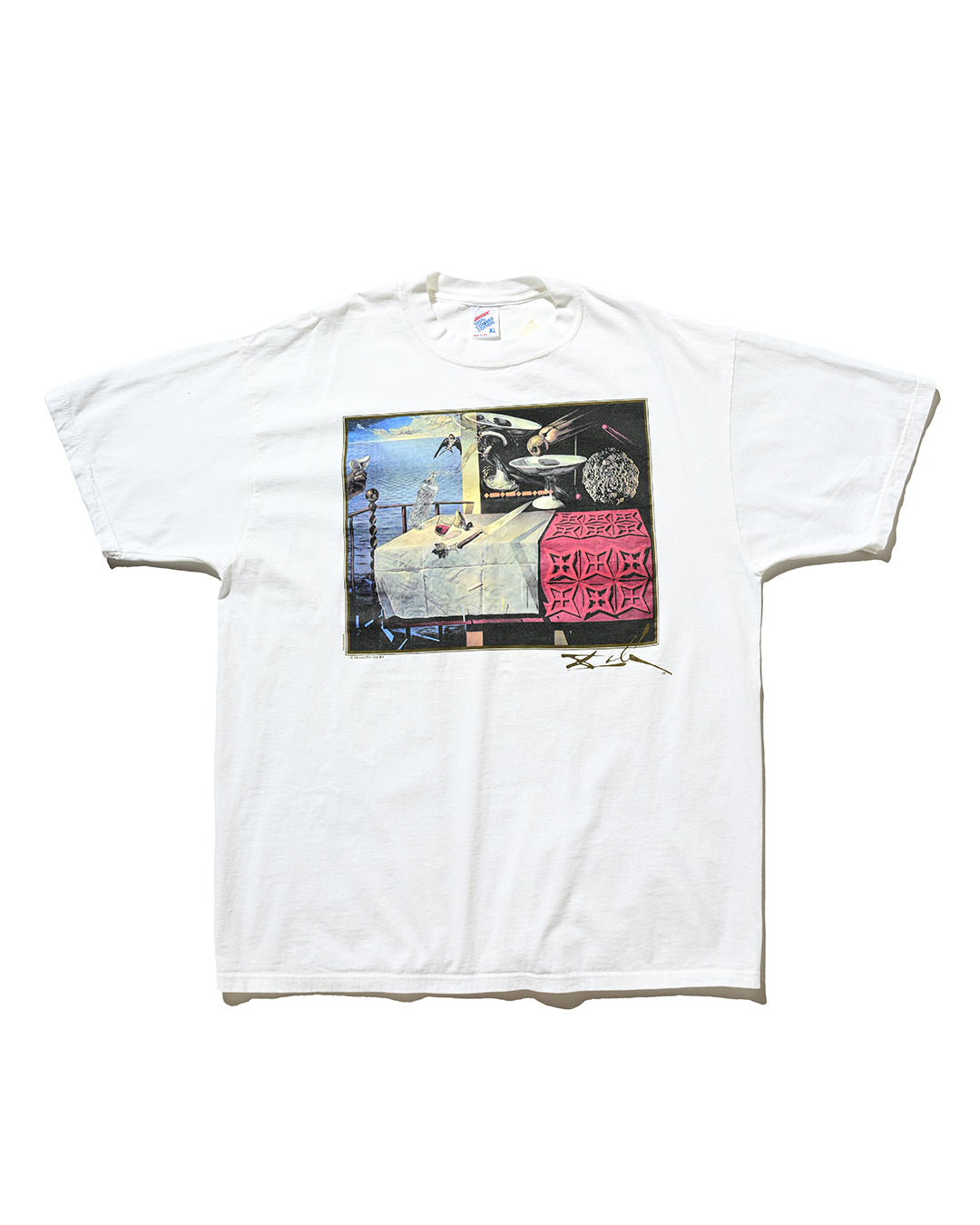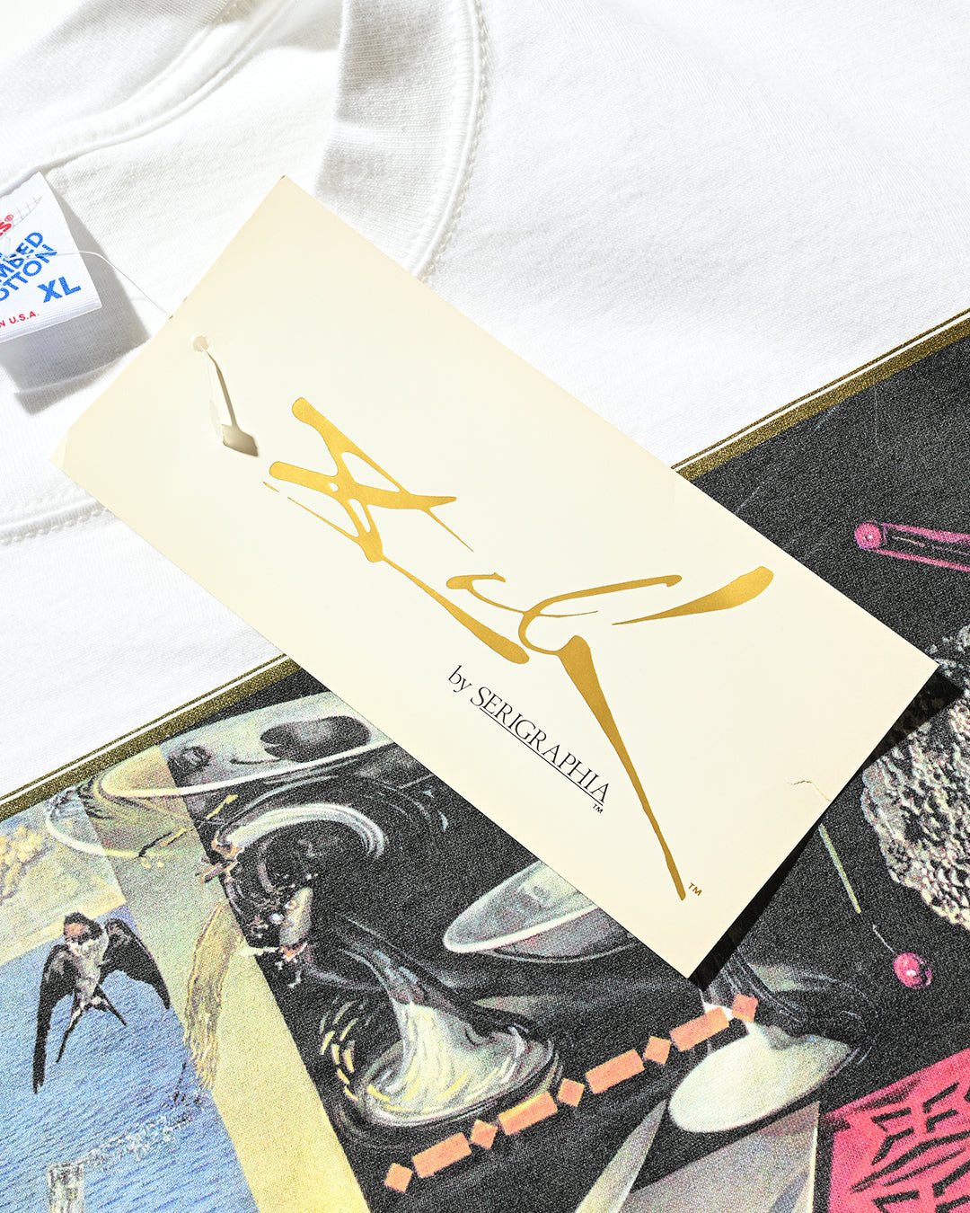 サルバドール・ダリ1950年に制作された「The Sublime Moment」(邦題:至高の瞬間)がフロントにプリントされています。ダリの超現実的な世界観が印象的です。フラッシャー付きデッドストック、コピーライトあり、サイズXL。