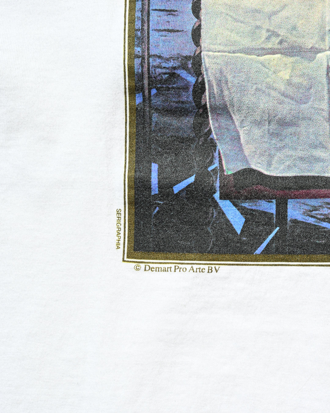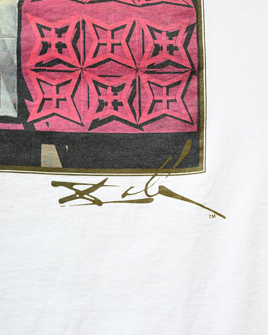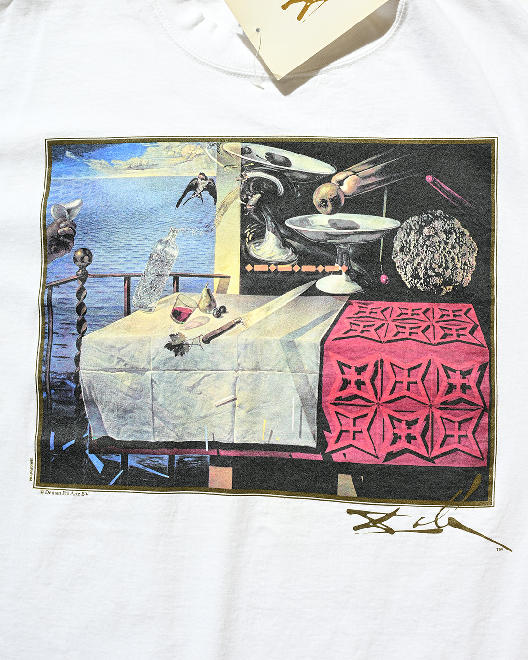 サルバドール・ダリ1950年に制作された「The Sublime Moment」(邦題:至高の瞬間)がフロントにプリントされています。ダリの超現実的な世界観が印象的です。フラッシャー付きデッドストック、コピーライトあり、サイズXL。