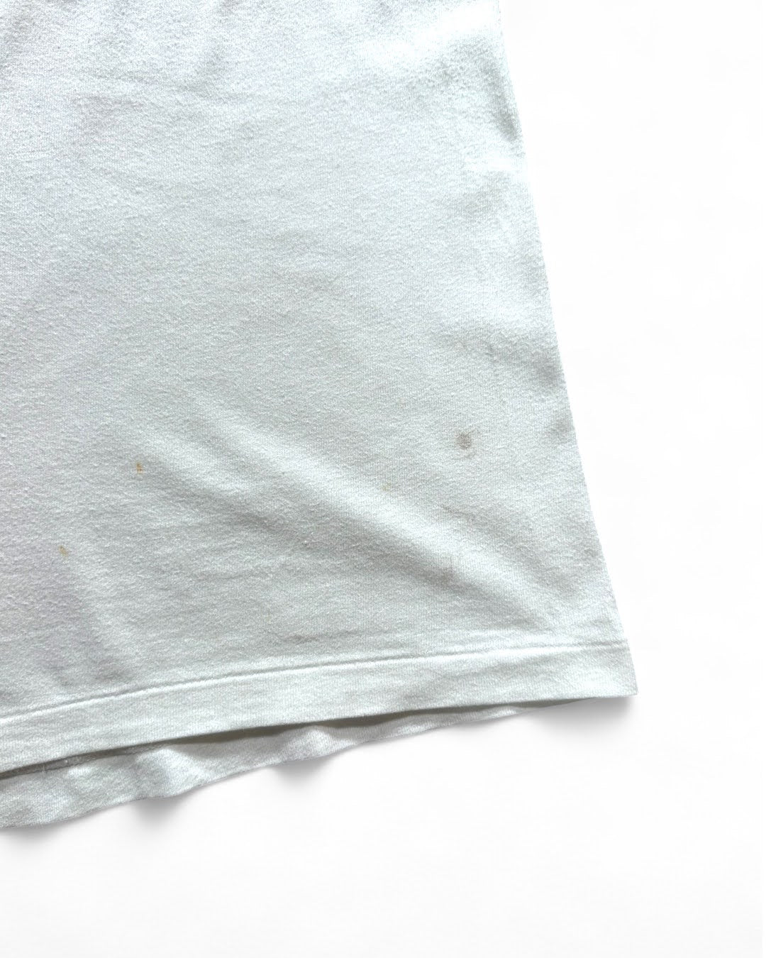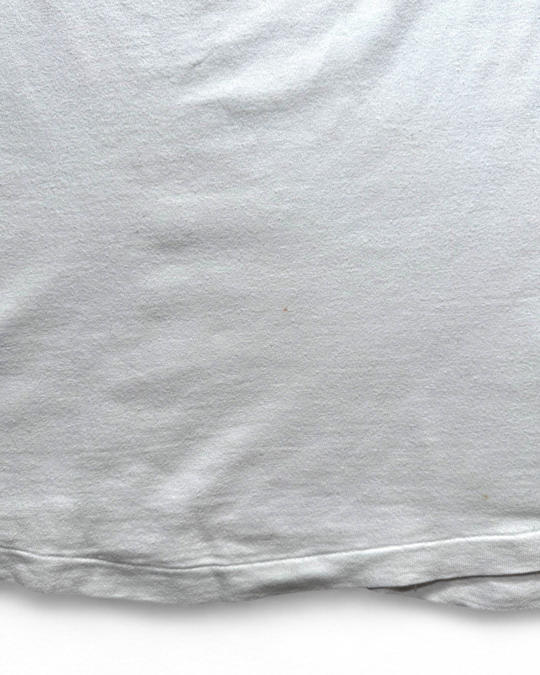 1993年公開の映画 天使にラブソングを2(原題:Sister Act 2: Back in the Habit)のTシャツ。フロント上部に赤い大文字の「WHOOPI」、中央にシスター姿のウーピー・ゴールドバーグの全身フォト、その左下に赤字で “SISTER ACT 2: BACK IN THE HABIT” のタイトルロゴを縦積みで配置。余白を活かしたポスターライクなレイアウトが特徴的です。コピーライトあり、サイズXL