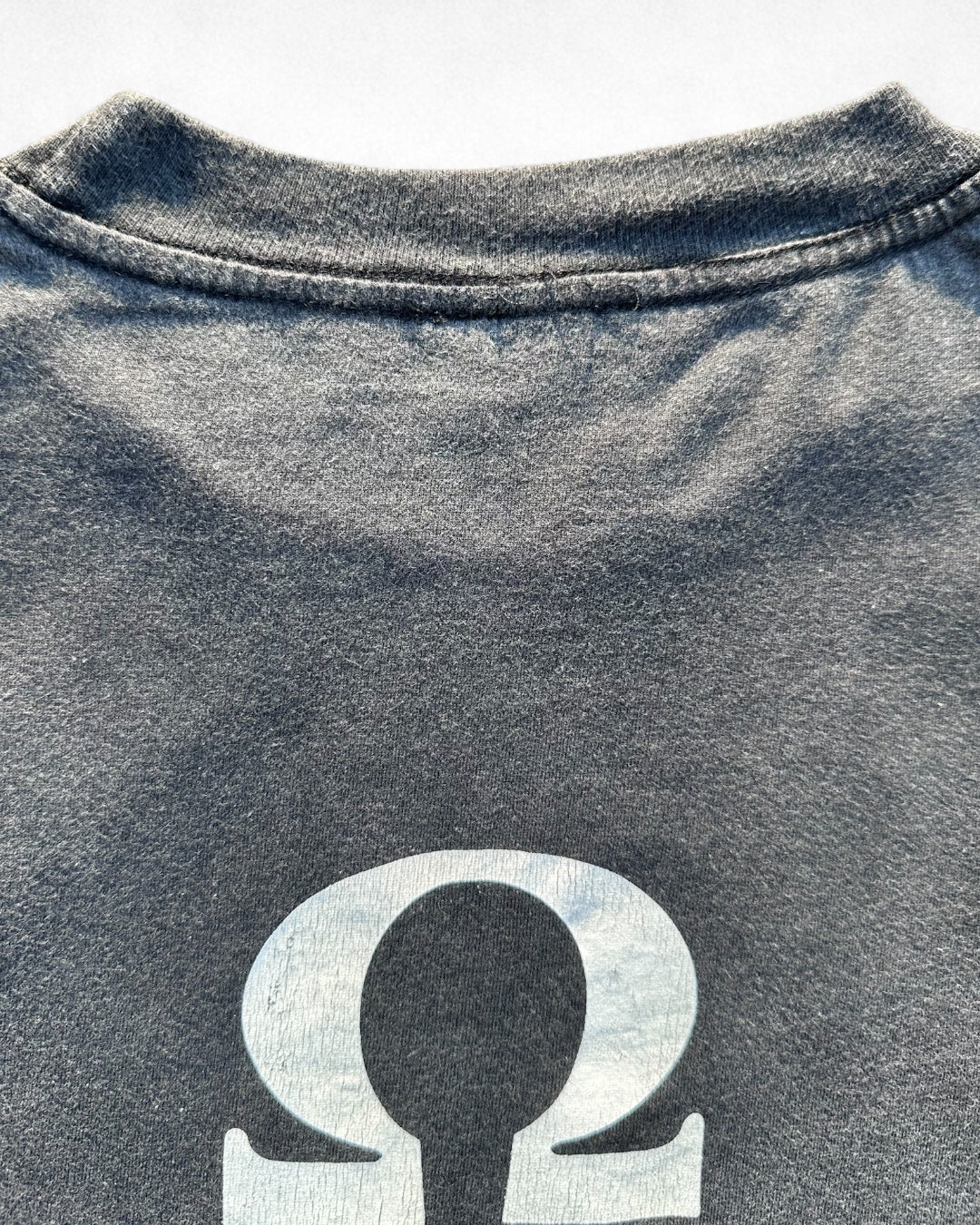 A tee featuring the album artwork from Sonic Youth’s landmark 1988 release Daydream Nation. The candle on the front is Gerhard Richter’s 1982 painting “Candle (Kerze)”. Boldly executed, the design is minimal yet highly art-driven, and the piece is widely acclaimed worldwide. Although this T-shirt has been reissued many times, the original period version with the back print remains in a class of its own. The natural cracking of the print, the character of the body, and the silhouette are all excellent. Copyright present.