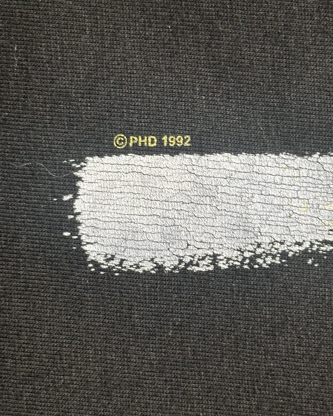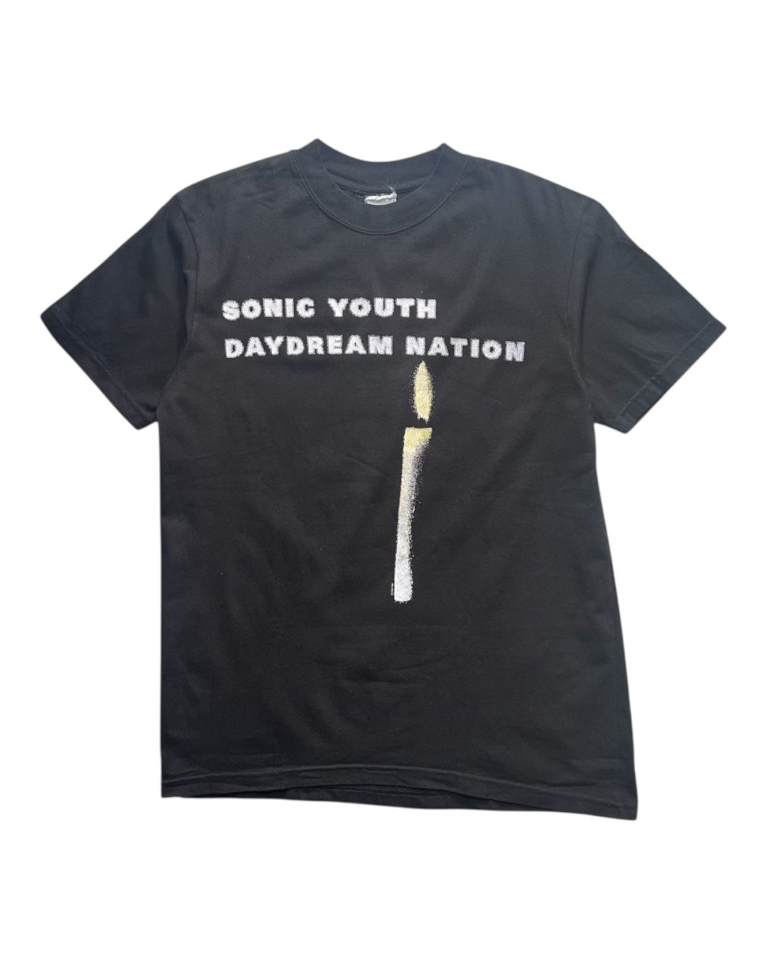 1988年リリースのSonic Youthの代表作「Daydream Nation」のアルバムアートワークを落とし込んだ一枚。フロントに描かれたキャンドルは、現在世界で最も注目を浴びる芸術家のひとりである Gerhard Richterが1982年に描いた「Candle (Kerze)」となります。大胆にデザインしたこのTシャツはミニマルでありながらアート性が高く、世界的にも非常に評価の高い一枚です。何度も復刻されているTシャツですが、バックプリントの入る当時のオリジナルはやはり別格の存在感かと思います。プリントのひび割れやボディの雰囲気も非常に良いかと思います。コピーライトあり