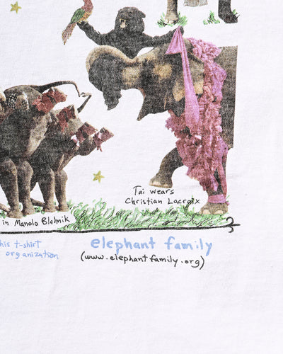 A charity T-shirt produced in 2005 by the New York fashion magazine "W magazine" together with the Asian elephant conservation group "Elephant Family." Elephants wearing Chanel, Louis Vuitton, Ralph Lauren, Dolce & Gabbana, etc. are printed on the front and back, and the shoot is Bruce Weber and a very luxurious lineup. There are many relatively small individuals, and I think this L size was the largest size.Good condition,size L